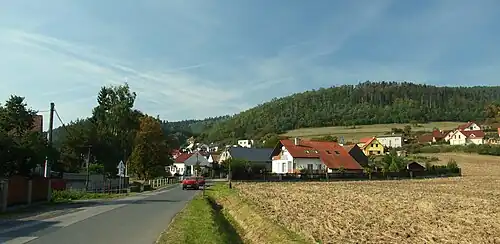 Nachbarorte sind Na Lísku, Lísa, Stradonice, Porostlina, Zdejcina und Drábov im Norden, Na Vinici, Pod Vinicí, Na Morákově und Beroun im Nordosten, Na Máchovně, Plzeňské Předměstí, Královský Horizont, Za třemi kříži und Zavadilka im Osten, Jarov, Králův Dvůr und Karlova Huť im Südosten, Nad stadionem und Počaply im Süden, Trubín und Svatá im Südwesten, Trubská und Hudlice im Westen sowie Nový Jáchymov, Doužebnice, Krušná Hora, Otročiněves und Lísek im Nordwesten.
