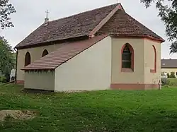 - Die Peter-Paul-Kapelle, eine neogotische Kapelle mit roter Ziegelsteinfassade aus dem 19. Jahrhundert mit Glockentürmchen als Dachreiter.
