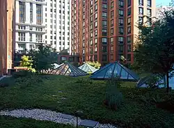 Zwischen den Türmen befindet sich auf der Basis eine 1300 m² große Dachterrasse mit Grünanlagen, was es damit zum größten „Green Roof“ New Yorks macht.[3] Der Garten wurde 2010 im Rahmen von Michael Bloombergs Grüner Kampagne angelegt.[3]