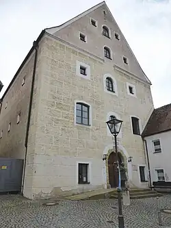 Der Zehentstadel von Beratzhausen (Paracelsusstraße 29) ist das frühere Kastenamt der Herrschaft Ehrenfels.