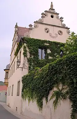 Der Zehnthof ist der Renaissance zuzuordnen. Zwei- und dreigeschossige Bauten formieren sich zu einer Dreiflügelanlage. An seiner Westseite ist er ummauert, sodass ein Innenhof entstand. Mehrere Giebel mit reicher Verzierung gliedern den Bau.[2]