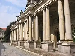 - Neuer Marstall am Schlossplatz (1897–1900, nach Entwurf von Ernst von Ihne): Rackwitzer und Plagwitzer Sandstein