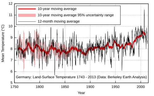 - ↑ a b Jahresmitteltemperatur in Deutschland nach Berkeley Earth