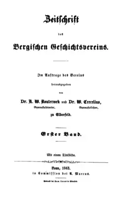 Zu den Autoren zählten bekannte Regionalforscher wie Wilhelm Crecelius, Anton Fahne, Wilhelm Engels und Otto Schell. In der Reihe erscheinen Forschungsergebnisse und wissenschaftliche Aufsätze (Abhandlungen und Miszellen), Buchbesprechungen sowie Informationen aus dem Bergischen Geschichtsverein und dessen 15 örtlichen Abteilungen. Jede Ausgabe besitzt üblicherweise einen Umfang von 200 bis 400 Seiten und umfasst unterschiedliche Jahreszeiträume (meist 3 Jahre). Der 100. Band (2002 – 2004) erschien im Jahr 2006. Aktuell liegt der Band 106 (2019 – 2021) aus dem Jahr 2023 vor.