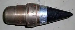 Militärischer Kopfzünder mit Zeit-Tempierung einer 120-mm-Mörser­granate. Dieser soll nach voreingestellter Flugzeit den Granat­körper im Fallen öffnen, um die darin befindlichen Nebeltöpfe bzw. Leuchtkörper auszubringen.