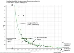 Ein Gemisch kann sowohl zeotrop als auch azeotrop sein, da die azeotrope Zusammensetzung temperatur- und druckabhängig ist, mal stärker und mal schwächer. Beispielsweise verhält sich das Gemisch aus Ethanol und Wasser unter etwa T = 305 K und p = 12 kPa zeotrop, während bei höheren Temperaturen und Drücken Azeotropie auftritt. Bei Normaldruck ist die Zusammensetzung etwa 90 Mol-% Ethanol und 10 Mol-% Wasser. Bei der Grenze sind jedoch die Unterschiede zwischen den Zusammensetzungen der Dampf- und der Flüssigphase ebenso wie die relative Flüchtigkeit noch sehr klein, so dass eine technische Nutzung des Effekts nahe dem azeotrop/zeotrop-Übergang kaum möglich ist, sondern erst bei deutlich geringeren Temperaturen und Drücken.