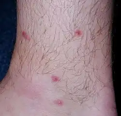 Die Badedermatitis ist eine harmlos verlaufende Infestation des Menschen mit winzigen Larven von Saugwürmern der Gattung Trichobilharzia spp., darunter Trichobilharzia szidati.[1] Der Befall von Menschen geschieht irrtümlich; sie sind aus Sicht der Wurmlarven ein sogenannter Fehlwirt.