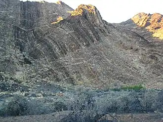 - Die siliziklastische Brak-River-Formation ist ca. 400 m mächtig. Sie ist benannt nach einem südlichen Nebenfluss des Ugab unmittelbar westlich der Brandberg-West-Mine (siehe unten) und wird mit der Ghaub-Formation[10] der nördlichen Zone des Damara-Gürtels korreliert.[11]