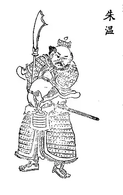Zhu Wen war der Sohn eines Lehrers für konfuzianische Klassiker. Er beteiligte sich am Aufstand des Huang Chao, der die Tang-Dynastie in seiner Existenz bedrohte, und erreichte einen hohen militärischen Rang. Als sich die Niederlage Huang Chaos abzeichnete, wechselte er 882 auf die Seite des Kaisers Xizong, der ihn in den Rang eines Militärgouverneurs (jiedushi) erhob.