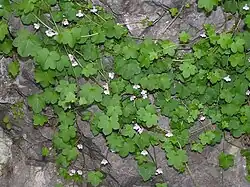 Das Zimbelkraut (Cymbalaria muralis, synonym Linaria cymbalaria), auch Zymbelkraut, Mauer-Zimbelkraut oder Eustett (Schweiz)[1] genannt, ist eine Pflanzenart innerhalb der Familie der Wegerichgewächse (Plantaginaceae).