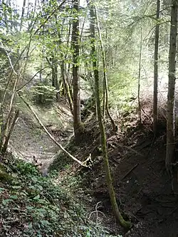 Der überwiegende Teil des Einzugsgebietes liegt in freier Flur. Wälder stehen an den Hängen des Albtraufs und des rechtsseitig den Bach lange begleitenden Bergrückens sowie auf den letzten knapp zwei Kilometern beidseits des Laufs, wo der Bach wieder eine ansehnliche Taltiefe erreicht hat. Zuflüsse am Mittellauf entwässern einige isolierte Waldstücke im Albvorland.