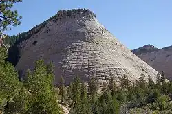 Am Osteingang des Parks findet sich die Checkerboard Mesa, ein Tafelberg, gebildet aus Sandstein der Navajoschicht. Tiefe vertikale Rillen und Kamine und horizontale Bänder ziehen durch die Flanken des Berges. Die Bänder bilden sich entlang der Schichtgrenzen durch Verwitterung und Abtragung längs unterschiedlicher Sedimentationsschichten. Die vertikalen Rinnen sind nur an der Nordseite zu beobachten, da hier der Schnee langsamer abschmilzt und sie durch herabrinnendes Wasser und Frosterosion erweitert werden.