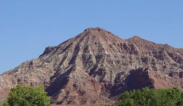 In der frühen Jurazeit fluteten stark eisenoxidhaltige Wasserströme die Gegend, der sedimentierte Eisenoxidschlamm bildet die heutige Temple-Cap-Schicht. Schlick- und Lehmschichten zeigen das Ende dieser Sedimentation an, als sich die Gegend kurzfristig wüstenartig veränderte. Die Temple-Cap-Schicht lässt sich am besten am East Temple und am West Temple im Zion Canyon beobachten. Durch Regen heraus gewaschenes Eisenoxid bildet charakteristische rote Streifen, die man am Altar of Scrifice besonders gut sehen kann. Eingedrungenes Eisenoxid färbt auch den unteren Teil der Navajo-Schicht orange bis rot. |