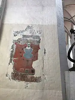 - ↑ Wehrmann (Lit.), S. 367: Die seit Jahrhunderten nicht mehr benutzte Kapelle diente längst als Aufbewahrungsort für Baumaterialien; sie mußte gesäubert und wieder in Stand gesetzt werden. Das geschah jedoch und, um die Bestimmung der Kapelle aller Welt vor Augen zu legen, wurde an der westlichen, der Straße zugekehrten Wand die Inschrift angebracht: FRIEDERICUS III , ROM. IMPERATOR, collegium confirmavit Anno 1485, und darunter ein Bild des Kaisers gemalt. Die gegenüber befindliche Wand erhielt die Jnschrift: Locus conventionis sacer, und darunter in einem Schilde das Zeichen der Gesellschaft und um den Schild die Kette.