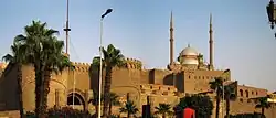 Eine Explosion im Pulverlager der Zitadelle zerstörte den Palast im Jahr 1824, er wurde danach nicht mehr aufgebaut. Stattdessen begann Muhammad Ali mit dem Bau einer großen Moschee im türkischen Stil, die von seinem Sohn Sa’id Pascha 1857 vollendet wurde.[4] Die 82 m hohen[4] Stiftminarette sind ihr Erkennungsmerkmal. Als Vorbild dienten die Minarette Istanbuler Moscheen des Baumeisters Sinan Pascha.[4]