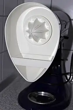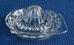 Im 1850 erstmals erscheinenden Kochbuch Das Hauswesen von Maria Susanne Kübler heißt es deshalb auch: „Um allen Saft aus einer Zitrone zu gewinnen, bricht man die abgeschälte Zitrone auseinander, macht in jedes Stück derselben der Länge nach einen Schnitt und preßt es aus. Macht man dagegen Querschnitte, so bleibt der größte Teil der Saftzellen unverletzt und man erhält folglich nur sehr wenig Saft. Neuerdings fehlt wohl auch in keinem Haushalte mehr die kleine gläserne vorzügliche Zitronenpresse.“[13] Dieses gläserne „Ei des Columbus“ war die erste Zitronenpresse außerhalb der Türkei, mit der man Zitronen nicht bloß ausdrücken, sondern durch die Drehbewegung der Zitronenhälfte auf einem geriffelten Kegel auch noch den letzten Safttropfen aus der Frucht herauspressen konnte. Im Grunde ist dieses Prinzip bis heute unverändert geblieben und verkörpert die sprichwörtliche Zitronenpresse, ein Begriff, der im übertragenen Sinne auch Gebäude wie die St.-Engelbert-Kirche des Architekten Dominikus Böhm in Köln-Riehl,[14] die Kuppel der Kunstakademie Dresden von Constantin Lipsius,[15] den Turmabschluss der Bethanienkirche von Zweck & Voigt in Leipzig, die Kuppel des Tempel der Göttlichen Vorsehung in Warschau oder die Filzhüte (Lemon Squeezer Hats) der Neuseeländischen Armee[16] anschaulich beschreibt. Bis heute werden Zitronenpressen in Abwandlung dieses Urmodells aus verschiedenen Werkstoffen angefertigt.