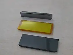 ATR-Messkristalle für die Infrarotspektroskopie. Der gelbe Kristall in der Mitte besteht aus Zinkselenid.