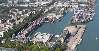 Nach dem Zweiten Weltkrieg verkleinerte man das nördliche Hafenbecken des Industriehafens, indem es mit Kriegsschutt aufgefüllt wurde.