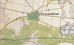 Die aus vier Gehöften bestehende Siedlung Zollhaus ist bereits 1820 als Proschimer Zollhaus erwähnt. Die damals aus zwei Feuerstellen (Wohnhäuser) bestehende Siedlung hatte neun Einwohner.[1] Im Topographisch-statistischen Handbuch des Regierungs-Bezirks Frankfurt a. O. von 1867 ist die Siedlung als ausgebaute Zollschänke bezeichnet.[2] Sie fungiert wahrscheinlich schon vor 1800 als eine Zollstation an der Grenze zwischen dem Markgraftum Niederlausitz und dem Markgraftum Oberlausitz sowie später zwischen den preußischen Provinzen Brandenburg und Schlesien.