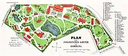 Der Zoologische Garten hatte eine Fläche von ca. 14 Hektar, die der Zoologischen Gesellschaft für fünfzig Jahre vom Hamburger Senat kostenfrei überlassen wurde. Nur schleppend konnten Verlängerungen ausgehandelt werden, so dass die Fläche nach 1920 der Stadt Hamburg zurückgegeben werden sollte. Der Zoologische Garten wurde 1930 geschlossen. Ein Teil des Geländes wurde in einen als „Volkspark“ bezeichneten Rummelplatz mit Jahrmarktsbetrieb umgewandelt, der andere in einen Vogelpark.[9] Letzterer wurde bereits nach eineinhalb Jahren liquidiert.[10] In den Jahren 1934 und 1935 wurde die Parkanlage unter Leitung des Gartenarchitekten Karl Plomin für die Niederdeutsche Gartenschau neu gestaltet. An dieser Stelle befindet sich seitdem Planten un Blomen, eine 1986 auf 47 ha erweiterte Parkanlage. Die Tiergartenstraße an der Grenze zur Bahn erinnert an die frühere Nutzung des Geländes. Bis 1970 befanden sich im Hamburger Stadtpark einige Kleintiergehege aus dem Zoologischen Garten.