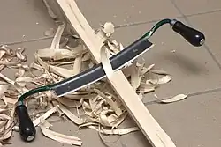 Eine Ziehklinge hingegen ist ein Stahlblech oder eine Glasscheibe zur feinen Bearbeitung von Holzoberflächen.[1][2][3][4]