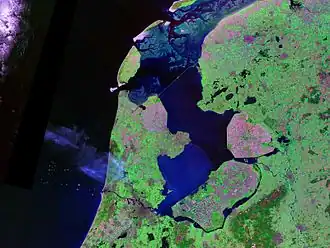 Der Name Zuiderzee findet sich noch auf historischen Karten und Dokumenten bis zum frühen 20. Jahrhundert und wird heute nur noch im historischen Kontext benutzt. Das aktuelle Satellitenfoto, das im Vergleich das Ausmaß der gewonnenen Landfläche verdeutlicht, zeigt demzufolge das IJsselmeer.