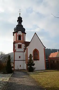 Die Saalkirche besteht aus einem im Kern romanischen Langhaus, einem eingezogenen rechteckigen Chor von 1443 im Osten und einem frühgotischen Chorflankenturm an dessen Südseite, der 1600 und 1753 aufgestockt und mit einer Welschen Haube bedeckt wurde. Das Portal befindet sich an der Südseite des Langhauses. Über dem Altar ruht ein Ziborium. Die Kanzel wurde 1682 aufgestellt, das Taufbecken ein Jahr später. Der Opferstock ist von 1477.
