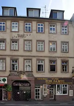 Anfang der 1960er Jahre waren in dem Gebäude neben einer Gaststätte noch je eine Spedition, Briefmarkenhandlung, Klischieranstalt, Lebensmittelgeschäft, Polstermöbelhandlung, Fußpflege, Rechtsanwaltskanzlei und Badeanstalt als Nutzer vorhanden.[14] Seit 1989 gehört das Haus zum Gebäudekomplex des hofseitig angebauten 5-Sterne-Hotels The Westin Grand Frankfurt der Schörghuber Unternehmensgruppe.[15] Im Erdgeschoss befinden sich links ein Fachgeschäft für Spielzeug sowie rechts ein nach der Insel Ko Samui benanntes thailändisches Spezialitätenrestaurant. In den darüber liegenden Etagen sind Büros der Hotelverwaltung sowie eine Rechtsanwaltskanzlei.