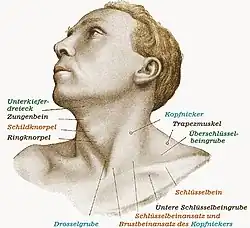 - ↑ Stieve, H. (1949). Nomina Anatomica. Zusammengestellt von der im Jahre 1923 gewählten Nomenklatur-Kommission, unter Berücksichtigung der Vorschläge der Mitglieder der Anatomischen Gesellschaft, der Anatomical Society of Great Britain and Ireland, sowie der American Association of Anatomists, überprüft und durch Beschluß der Anatomischen Gesellschaft auf der Tagung in Jena 1935 endgültig angenommen. (Vierte Auflage). Jena: Verlag Gustav Fischer.