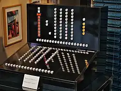 - einer Tastatur mit Lampenfeld für Ein- und Ausgabe von Zahlen und manuelle Steuerung von Berechnungen.