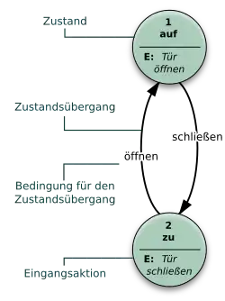 Ein Zustandsdiagramm für eine Tür, die nur geöffnet und geschlossen werden kann.