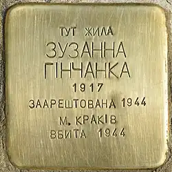 Zum Gedenken an Zuzanna Ginczanka verlegte der Künstler Gunter Demnig am 26. Juli 2018 am Theaterplatz der heute ukrainischen Stadt Riwne einen Stolperstein.[14]
