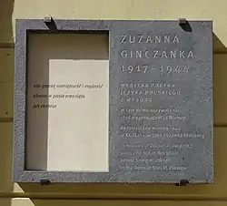Zuzanna Ginczanka, ursprünglich Zuzanna Polina Gincburg oder Zuzanna Pola Gincburżanka,[1] (geboren 22. März[2] 1917 in Kiew, Russisches Kaiserreich; gestorben Dezember 1944 in Krakau), war eine polnische Lyrikerin und Opfer des Holocaust. Ihr letztes Gedicht gilt als ein Meisterwerk der polnischen Lyrik zur Shoa.