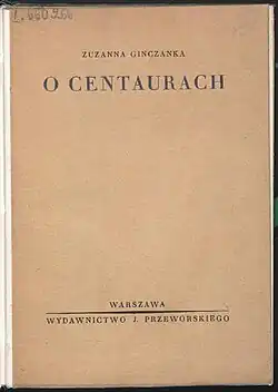 - 1936: O centaurach. Warschau : Wydawnictwo J. Przeworskiego Wikisource