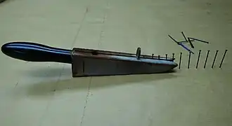 Erstmals im Jahr 1964 kamen mechanisierte Nagelhilfen für die Kürschnerei in den Handel.[16] Sie arbeiten nach dem gleichen System wie zum Beispiel die Pressluftnagler für Sattler oder Dekorateure. Anstelle der wiederverwendbaren Nägel oder Nadeln werden die Felle mithilfe von Hand- oder Federkraft, durch Druckluft oder durch Elektrotacker mit Zweckklammern auf der Zweckplatte gehalten. Die Zweckklammern sind höher als die haushaltsüblichen Heftklammern und werden beim Druckluftzwecken nicht völlig in das Leder geschossen, so dass sie sich beim Abzwecken leichter herausziehen lassen.