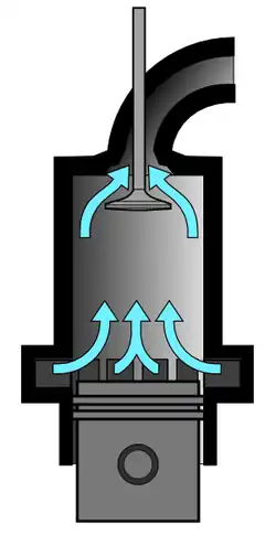 - Der nach unten laufende Kolben verdichtet dabei das angesaugte Frischgas, sobald der Ansaugkanal verschlossen ist.