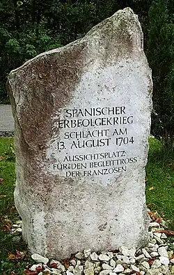 1702 besetzten bayerische Truppen die Reichsstadt Ulm, ferner die Städte Memmingen, Lauingen, Dillingen an der Donau, Neuburg an der Donau und Regensburg. Daher wurde am 30. September 1702 der Reichskrieg gegen Bayern, Kurköln und Frankreich erklärt. Ein Jahr später kam es am 20. September 1703 an der Donau zur Ersten Schlacht bei Höchstädt. Französische und bayerische Truppen unter Marschall Villars und Maximilian II. Emanuel besiegten die kaiserlichen Truppen unter dem Befehl von Generalfeldmarschall Hermann Otto II. von Limburg-Styrum. Nur der Widerstand preußischer Einheiten unter Leopold I. von Anhalt-Dessau verhinderte die völlige Auflösung der österreichischen und Reichsverbände. Unter Missachtung der zuvor von Augsburg erklärten Neutralität drangen kaiserliche Truppen in die Reichsstadt ein. Bayern und Franzosen rückten nach und beschossen Augsburg. Die Kanonade dauerte vom 7. bis zum 15. Dezember. Am Tag darauf zogen sich die Kaiserlichen zurück, und Frankreichs Marschall Ferdinand de Marsin quartierte sich mit 11.500 Mann in Augsburg ein. Sie verließen die Stadt Ende Juni 1704 und marschierten nach Donauwörth. Im selben Jahr erlangten die beiden fähigsten Feldherren Englands und Österreichs, John Churchill, Herzog von Marlborough und Prinz Eugen von Savoyen, den Oberbefehl über ihre jeweiligen Armeen.[3][4]
