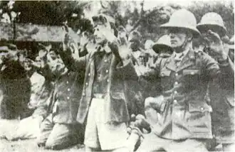 Ebenfalls am selben Tag rückten die Japaner dann weiter nach Norden direkt an die chinesische Grenze zur Grenzstadt Dong Dang vor, wo eine Kompanie des 3. Regiments der Tonkinese-Rifles und eine Batterie kolonialer Artillerie aufgestellt worden waren.[30] Nach Lemonniers Weigerung, eine allgemeine Kapitulation anzuordnen, starteten die Japaner einen Angriff auf die Stadt. Die Franzosen wehrten sich drei Tage lang. Die Japaner wurden dann von zwei Regimentern der 22. Division aus Lạng Sơn verstärkt und überrannten schließlich die französische Kolonialmacht. 53 Überlebende wurden enthauptet oder mit dem Bajonett getötet.[31]