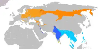 dunkelblau: Hauptüberwinterungsgebiete von F. parva