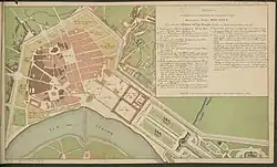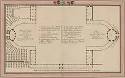 Die Freistellung des Deutschen Pavillons zur Stadt hin währte jedoch nur wenige Jahre. An seiner Stelle entstand ein einfaches Wohngebäude, das Carlowitzsche oder Reichenbachsche Haus. Es musste Mitte des 19. Jahrhunderts dem Bau der Sempergalerie weichen.[62] Das 1725 von Pellegrini geschaffene Fresko „Die vier Erdteile“ im Obergeschoss des Deutschen Pavillons wurde beim Brand von 1849 vernichtet.