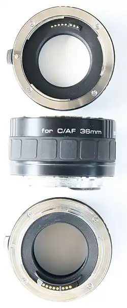 Es gab vereinzelt auch Telekonverter zur Brennweitenverlängerung, deren optische Elemente mittels eines inneren Bajonetts entriegelt und entfernt werden konnten, und auf diese Weise alternativ auch ein Zwischenring bereitstand.