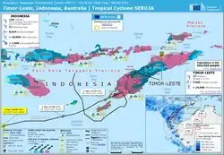- ↑ Tropical Cyclone Seroja hits Indonesia and East Timor: At least 76 people killed and thousands displaced by flash floods and landslides. Sky News, 5. April 2021, abgerufen am 8. April 2021 (englisch).