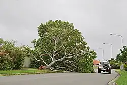 In den zwei großen Städten der Region, Cairns und Townsville, zwischen denen der Zyklon angelandet war, waren die Ausläufer des Sturmzentrums ebenfalls deutlich spürbar, die Beschädigungen hielten sich aber in Grenzen.[30][31] Mindestens ein Todesopfer gab es zu beklagen. Ein 23-jähriger Mann erstickte nahe Ingham, als er selber versuchte, sein Haus wieder mit Strom zu versorgen. Er atmete Abgase eines Dieselgenerators ein.[32] Zwei Männer, ein Ehepaar und ein Teenager wurden zwischenzeitlich vermisst, konnten aber in den folgenden Tagen aufgefunden werden.[33] Aufgrund der geringen Opferzahl und der weitestgehenden Verschonung der Großstädte war in der nachträglichen Berichterstattung hin und wieder davon die Rede, dass Queensland „noch einmal davon gekommen sei“, der genaue wirtschaftliche Schaden ist jedoch noch nicht zu beziffern.[34] In der Region, auf die ein Drittel des nationalen Zuckerrohranbaus entfällt und in der fast alle Bananenplantagen Australiens liegen, entstand allein in der Landwirtschaft enormer Schaden. Dieser beträgt ersten Schätzungen zufolge mindestens 500 Millionen Australische Dollar.[35]